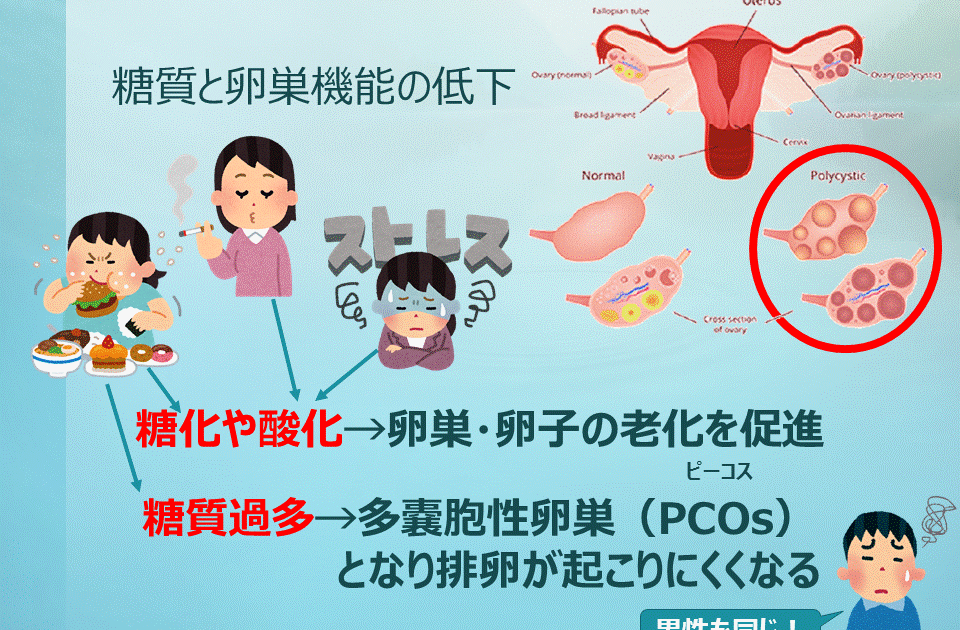 糖質過多と不妊:多嚢胞性卵巣症候群(PCOs)