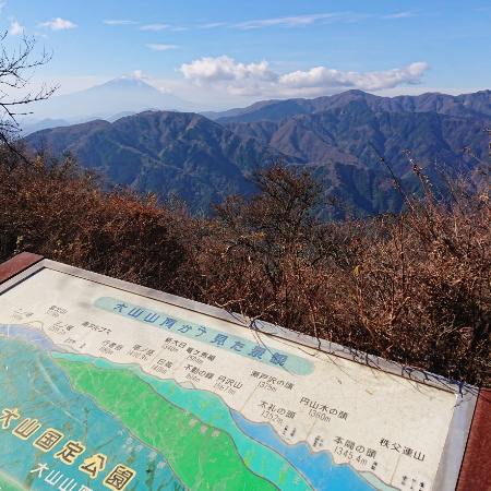 雪がかぶり始めた富士山と、丹沢の山々が晴天下に陰影豊かな姿を見せてくれる。