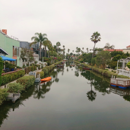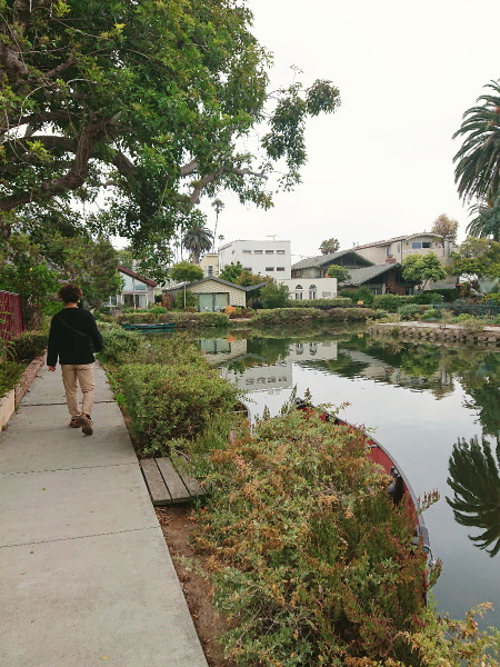 アボット・キニーは自ら、お気に入りのイタリアの町・ヴェニスを模した運河やリゾート施設を作る一大開発をこの地に施したのだそう。その名残がさっきお散歩してきたベニス運河や、この通りなんだって。