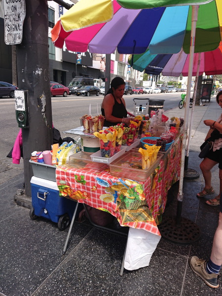 ミックスフルーツの巨大カップの店があちこちで店開き。