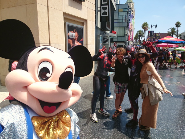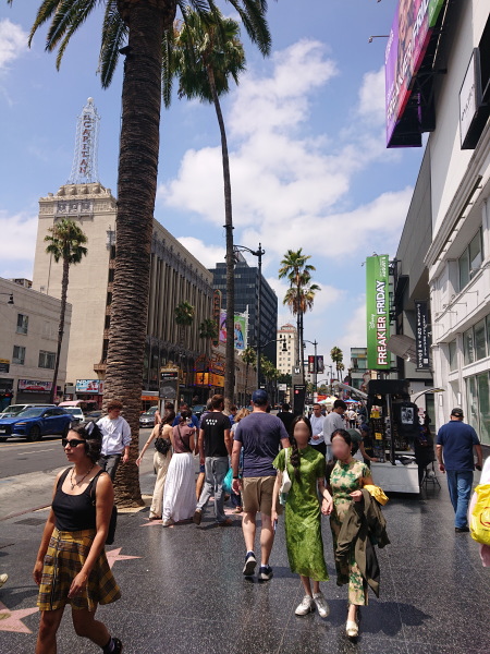 いろんな格好した観光客でいっぱいのハリウッド通り😊